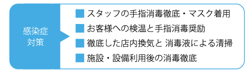 キックスタイルでは「新型コロナウイルス」等の感染症予防対策として、下記の取り組みを実施しております。