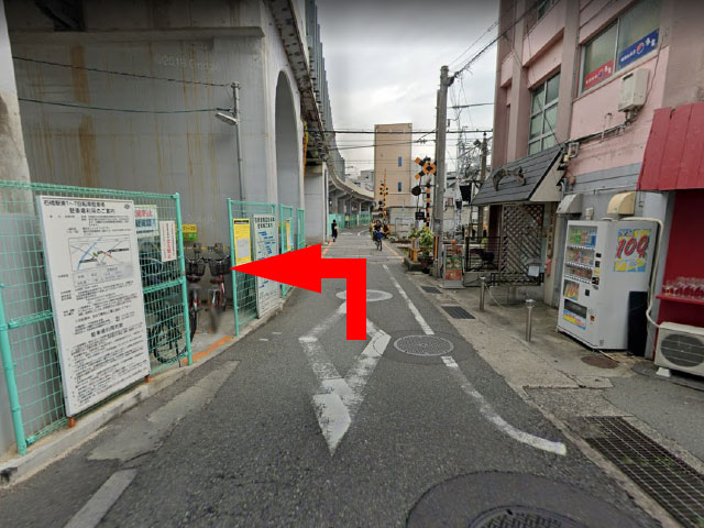 左手に「マクドナルド」が見えてきますので、その先の高架を上がらずに、