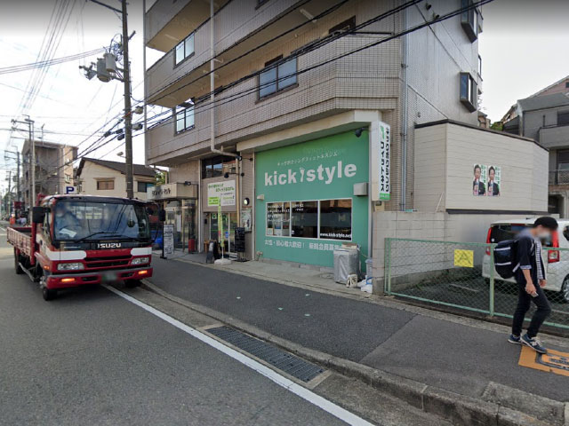 左側道に入りお進み頂きますと、左手にKICK-STYLEがございます。